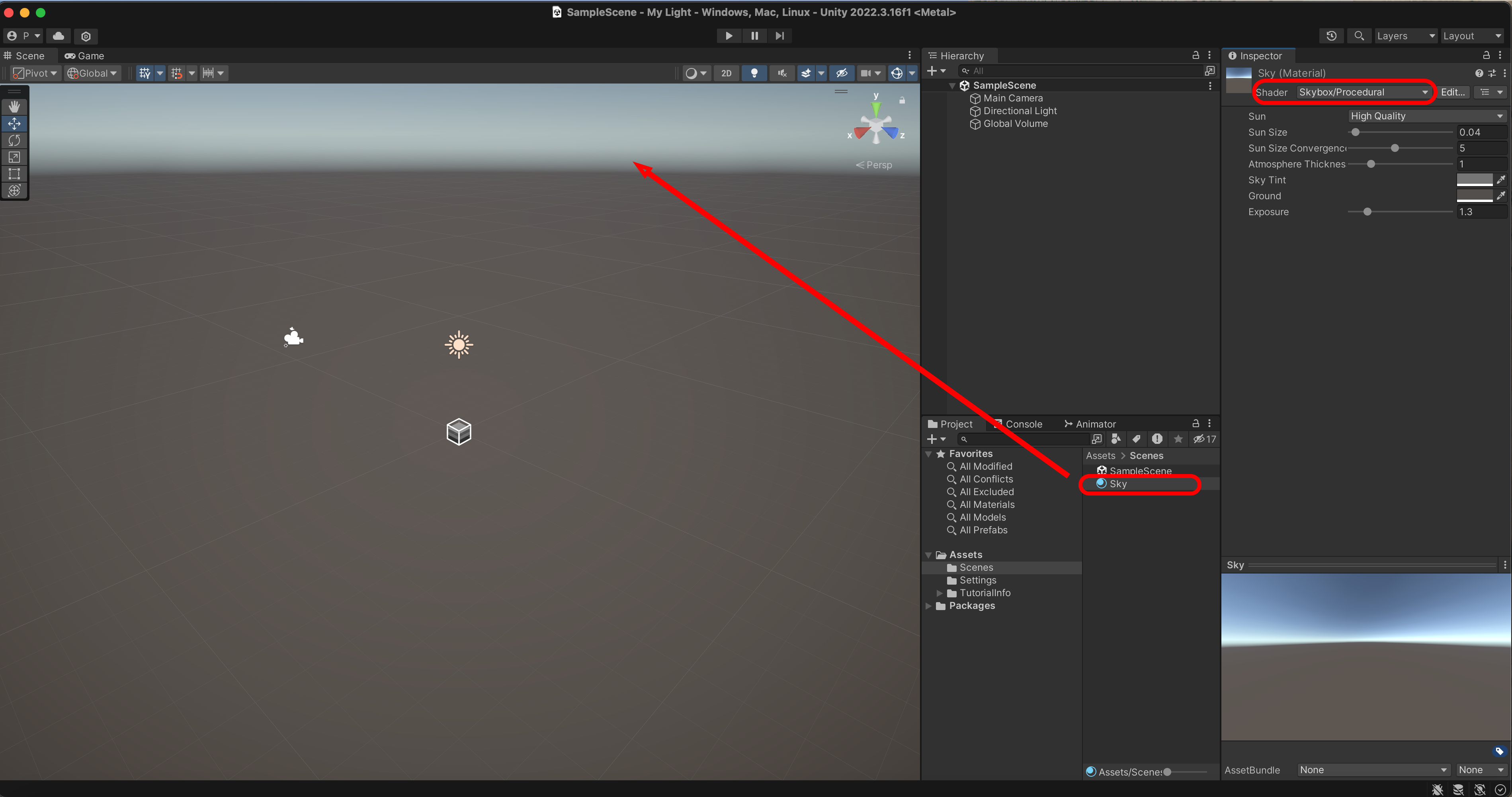 Shader를 Skybox/Procedure로 변경합니다.
