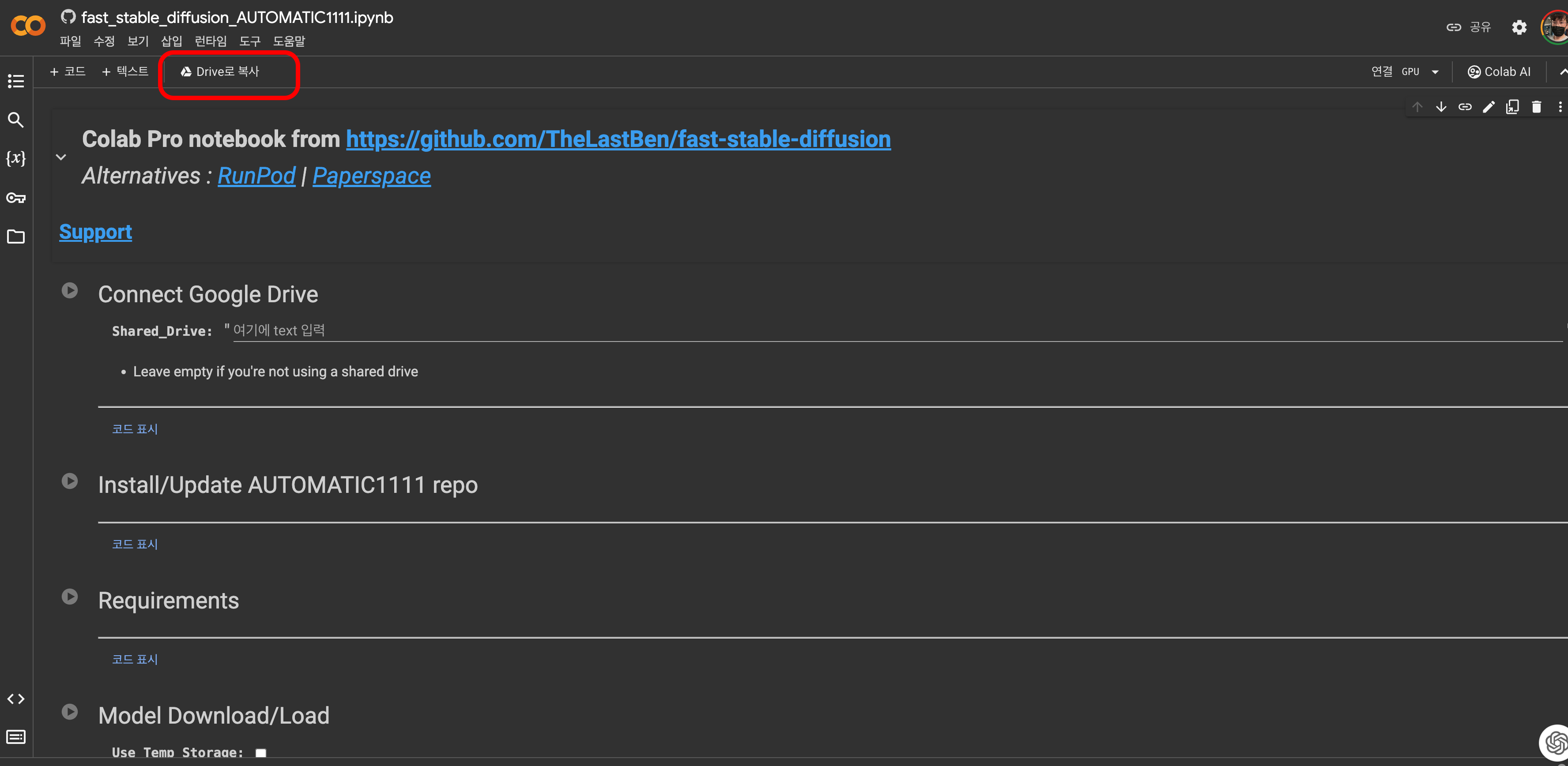 Drive로 복사를 누릅니다.