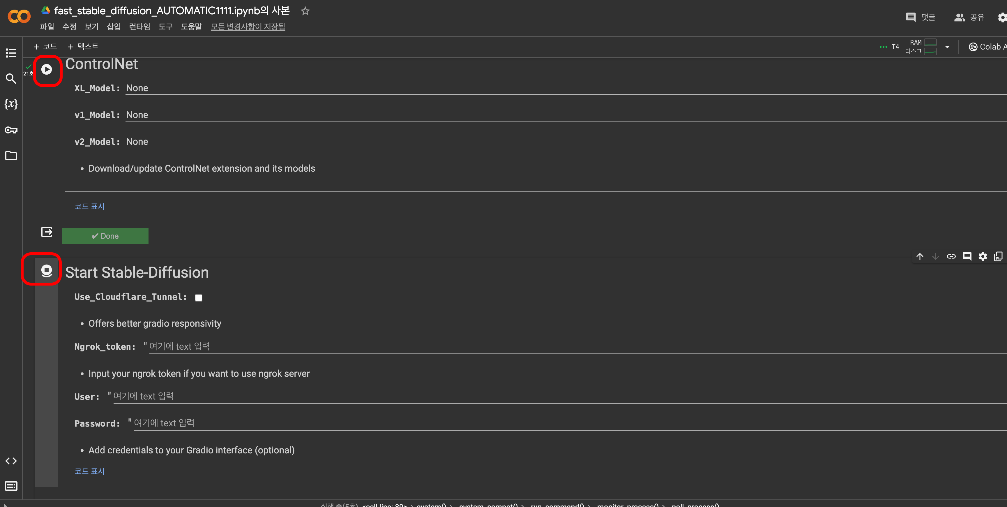 ControlNet까지 설치하고 Start Stable-Diffusion 해줍니다.