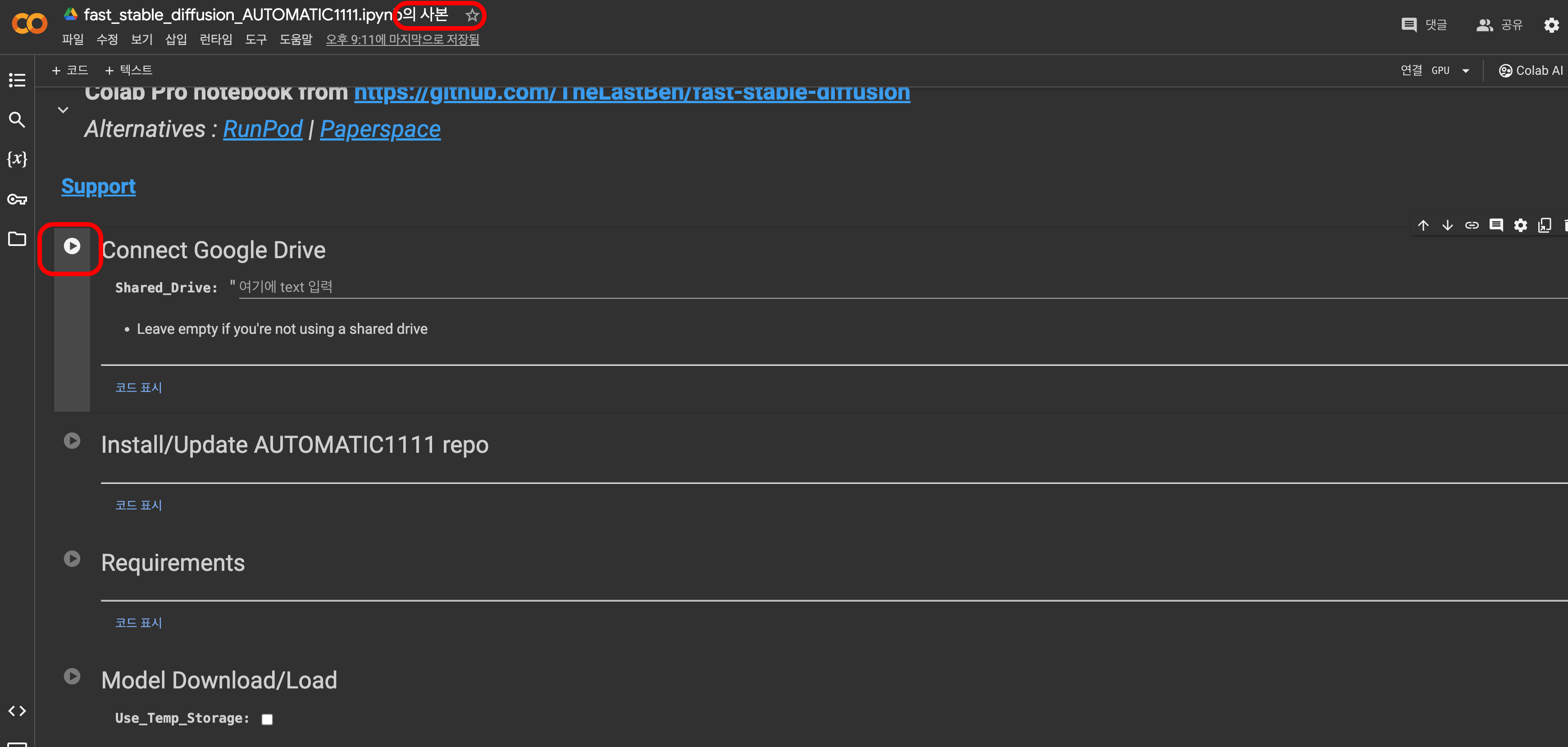 위 사이트에서 Google Colab에 들어갑니다.