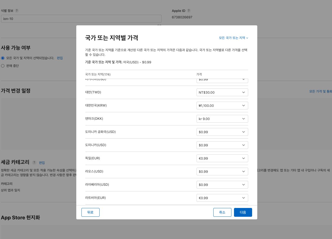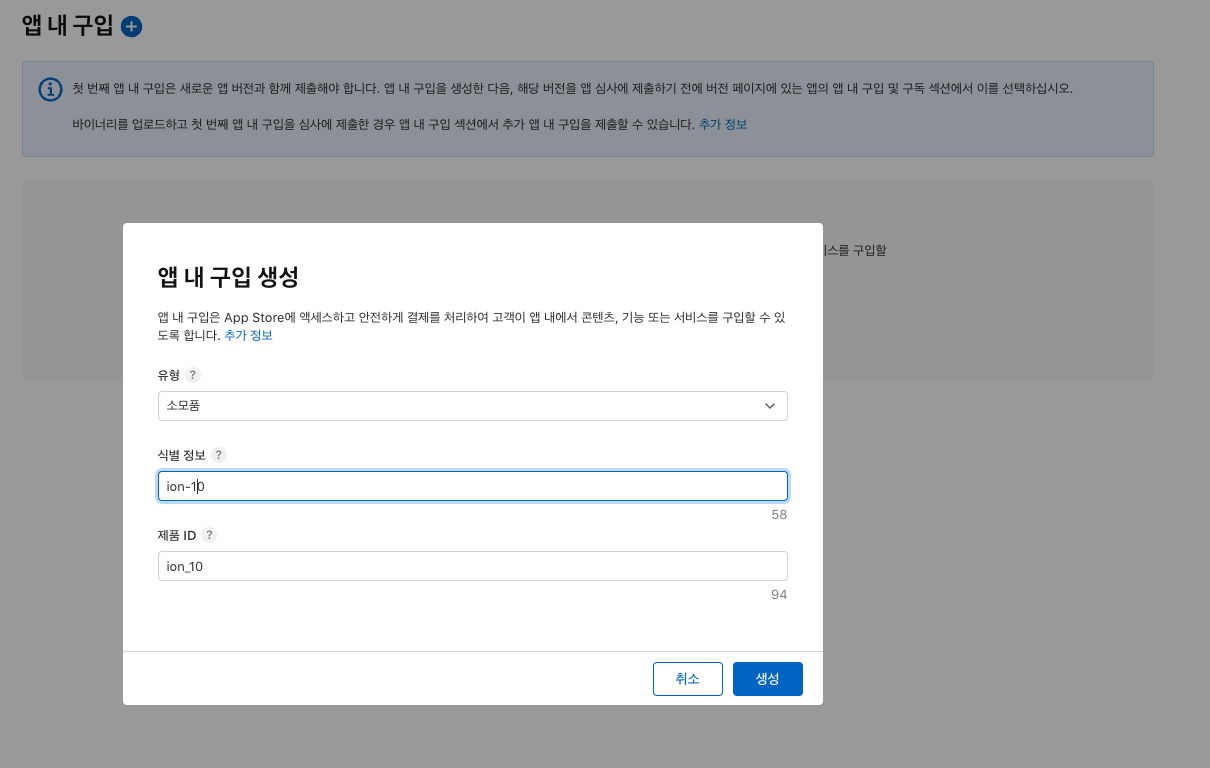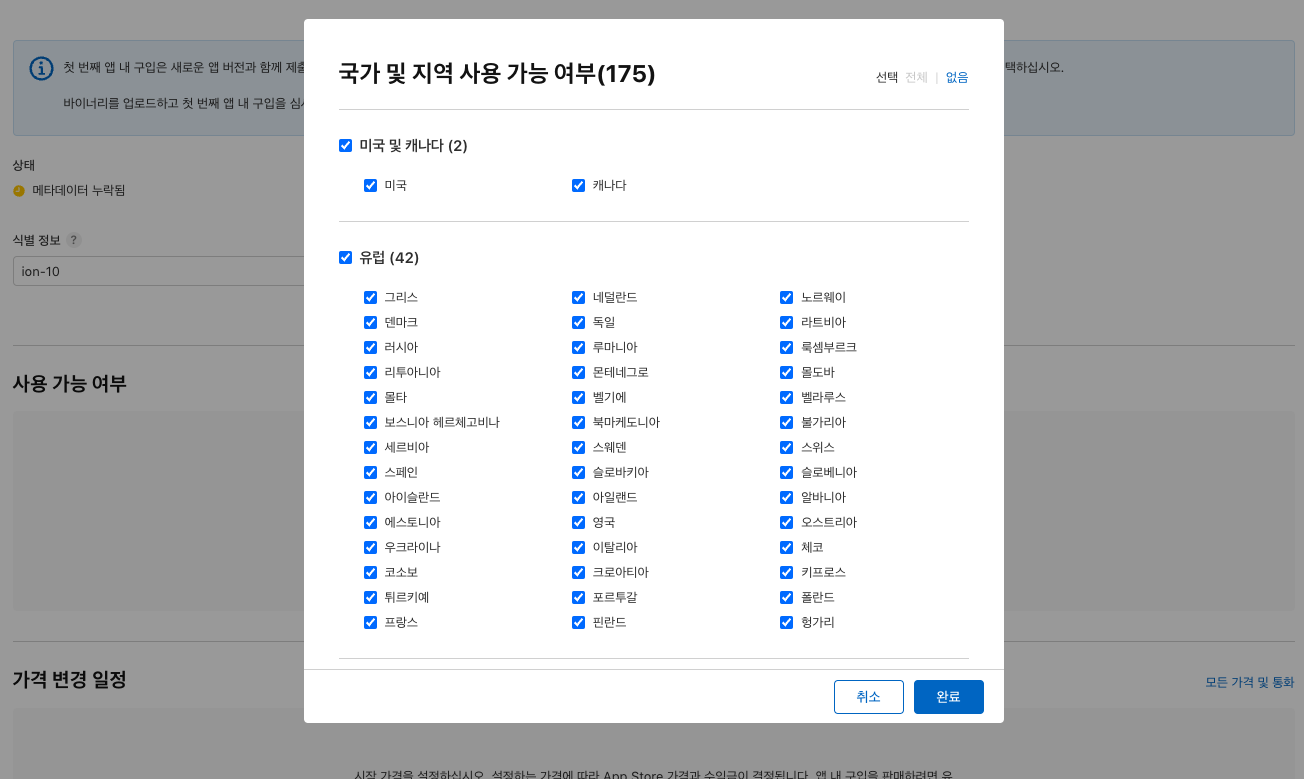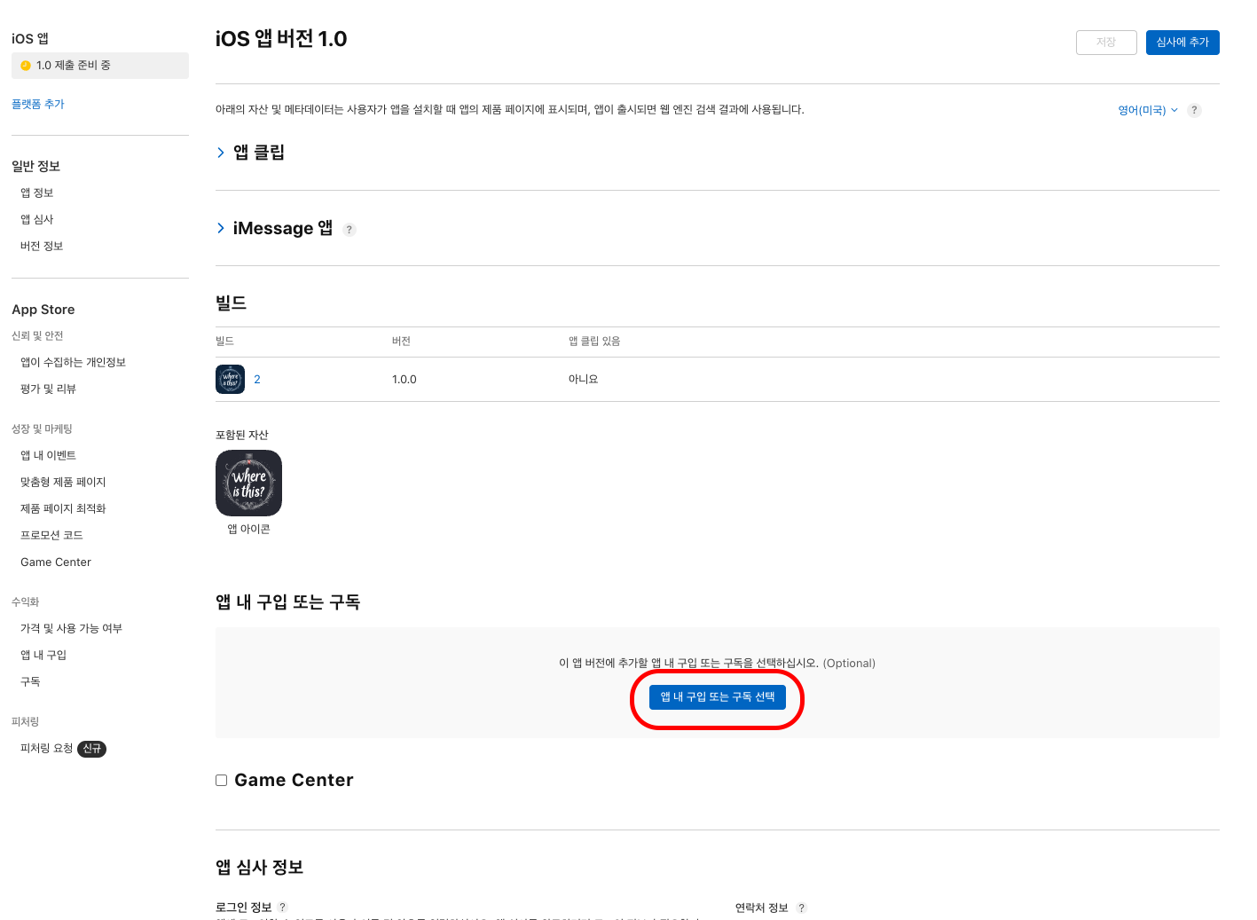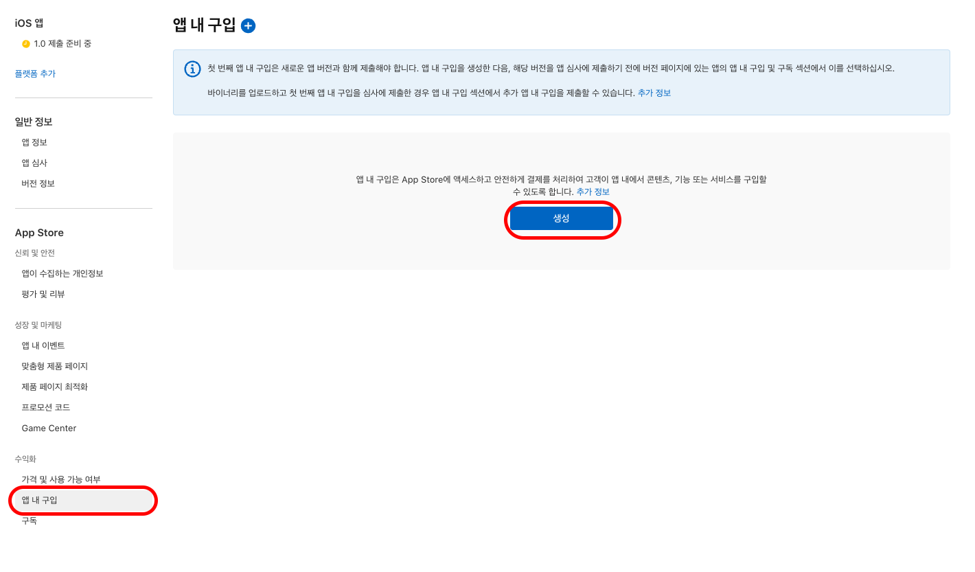 앱 배포 준비가 되면 입 내 구입 또는 구독이 하기 버튼을 누릅니다.
