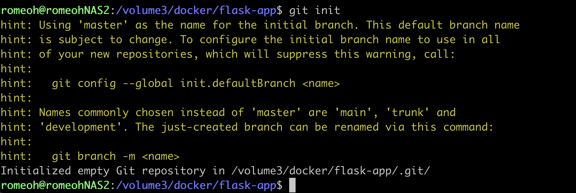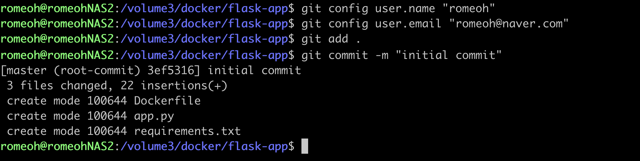 $ git clone ssh://romeoh@192.168.0.16:/volume3/docker/flask-app