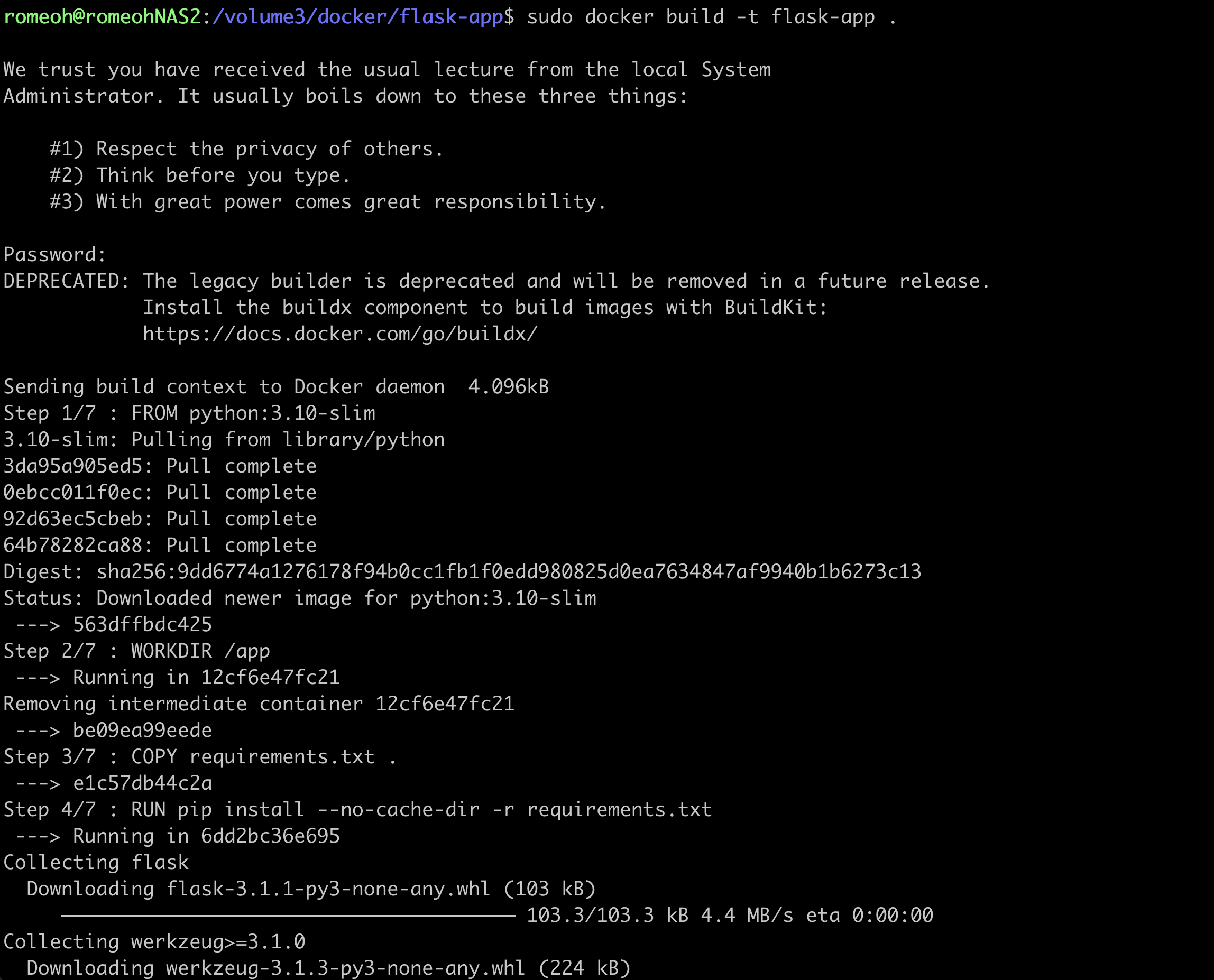 $ sudo docker build -t flask-app .