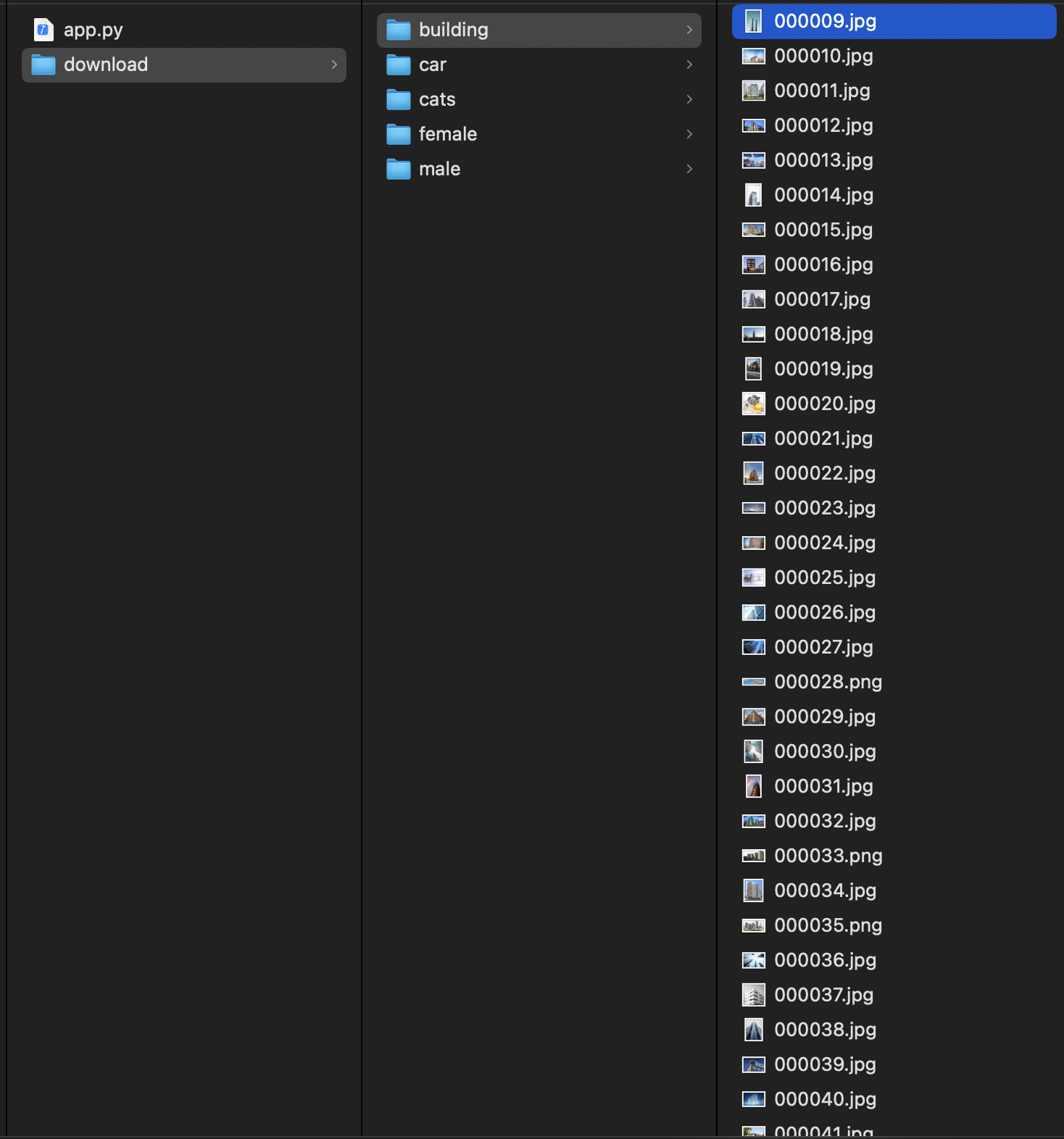 class_names = ['building', 'car', 'cats', 'female', 'male']