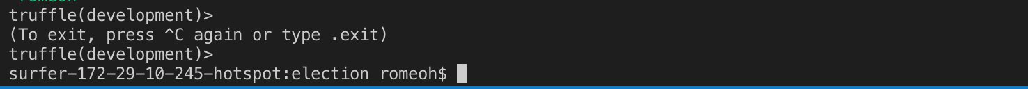 control + c 키를 두번 누르면 truffle console이 종료됩니다.