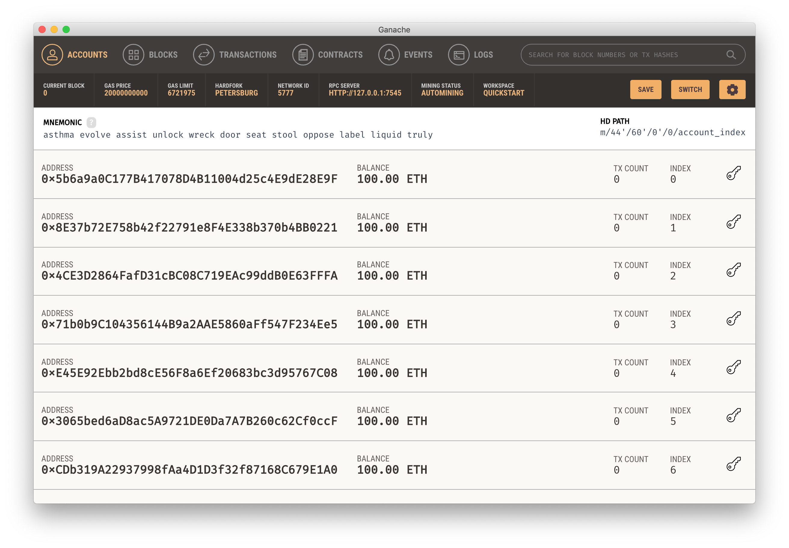 ganache GUI를 실행합니다.