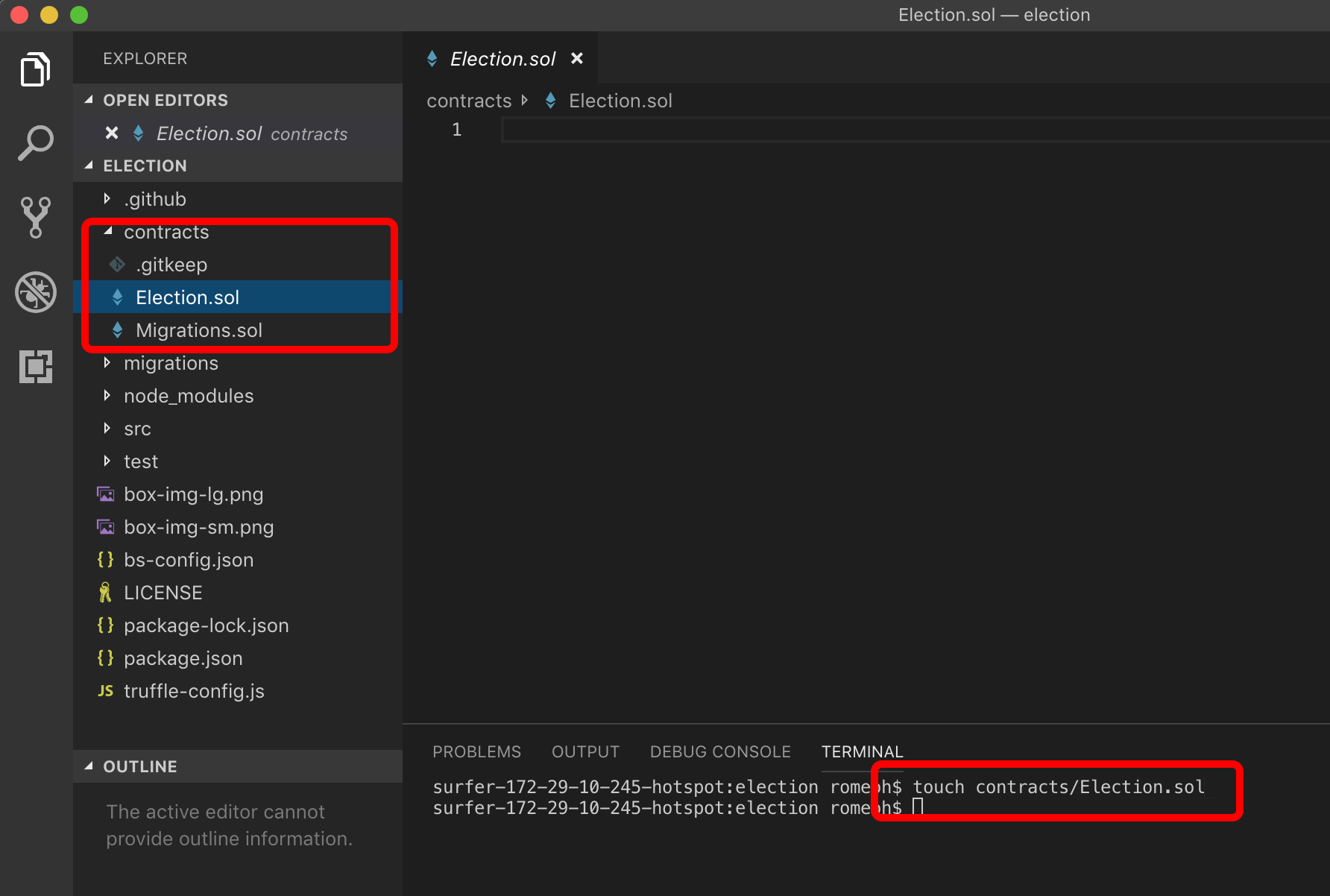 $ touch contracts/Election.sol