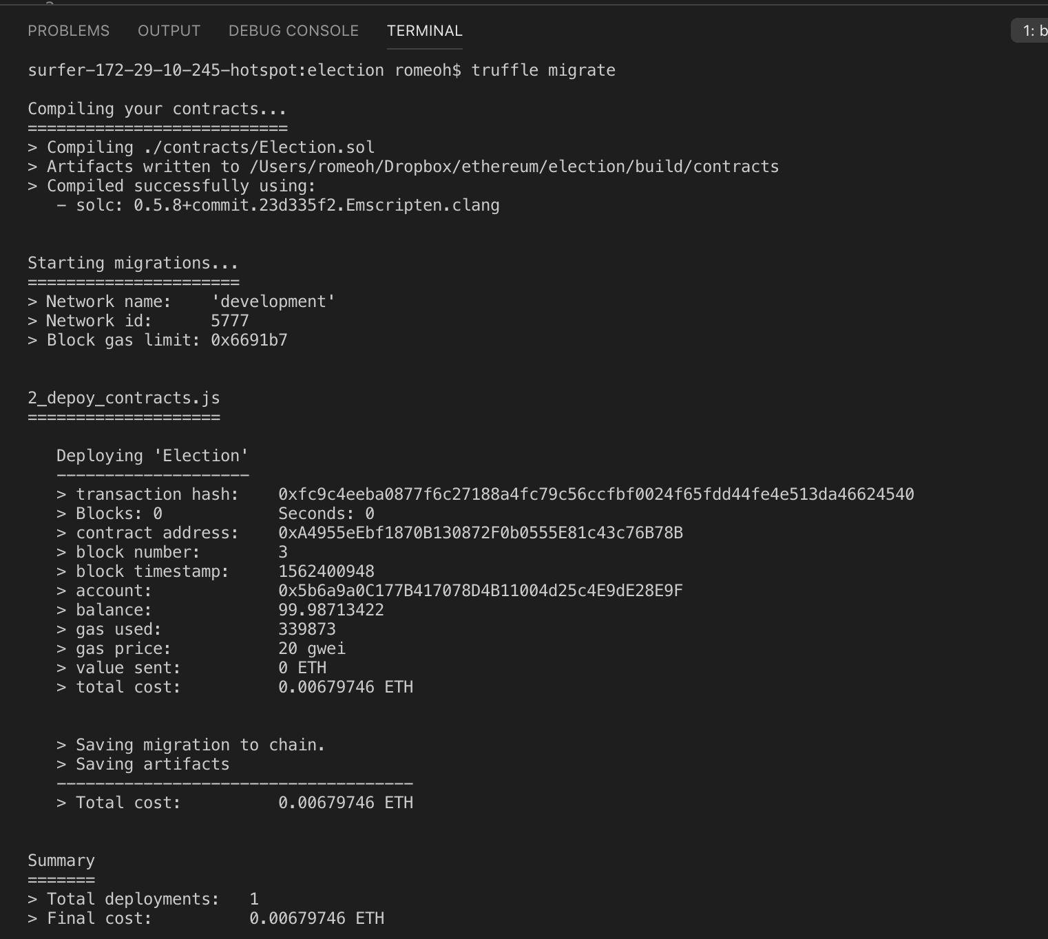 $ truffle migrate