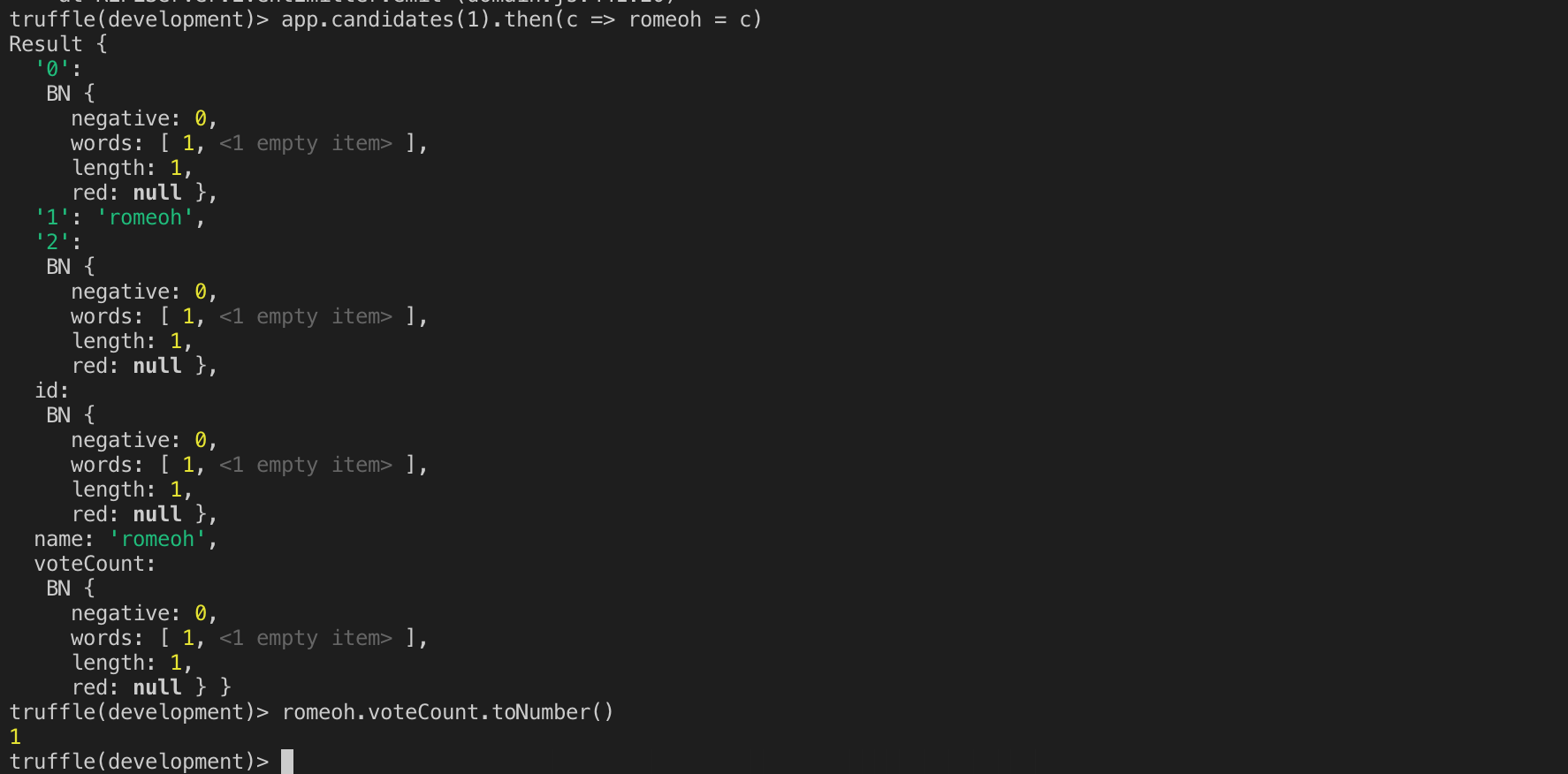 truffle(development)> app.candidates(1).then(c => romeoh = c)