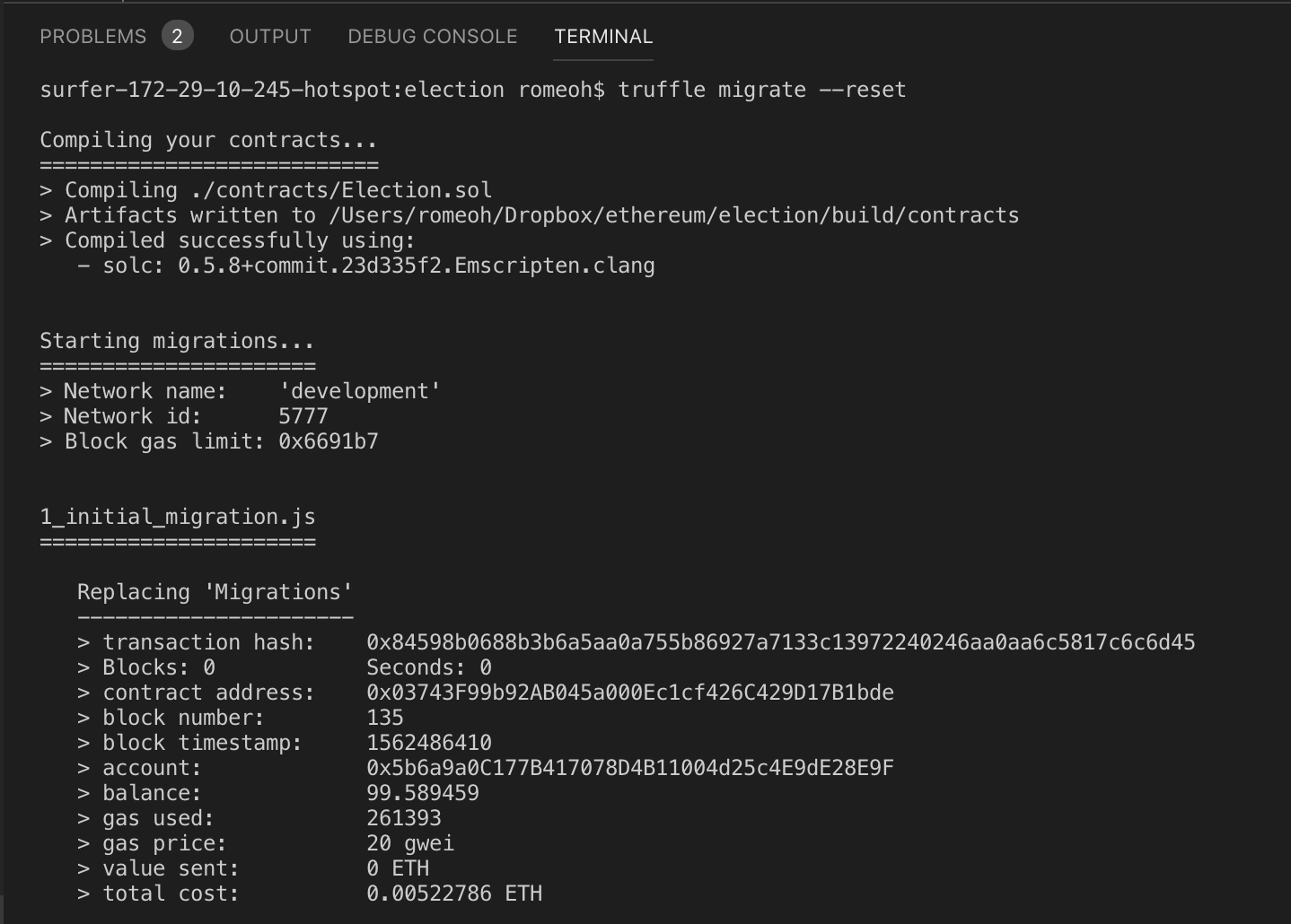 $ truffle migrate --reset