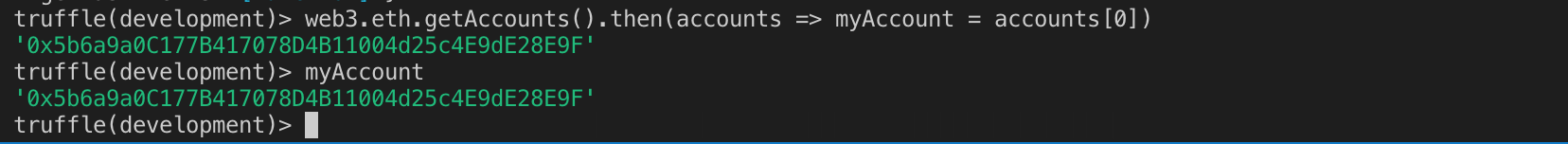 truffle(development)> web3.eth.getAccounts().then(accounts => myAccount = accounts[0])