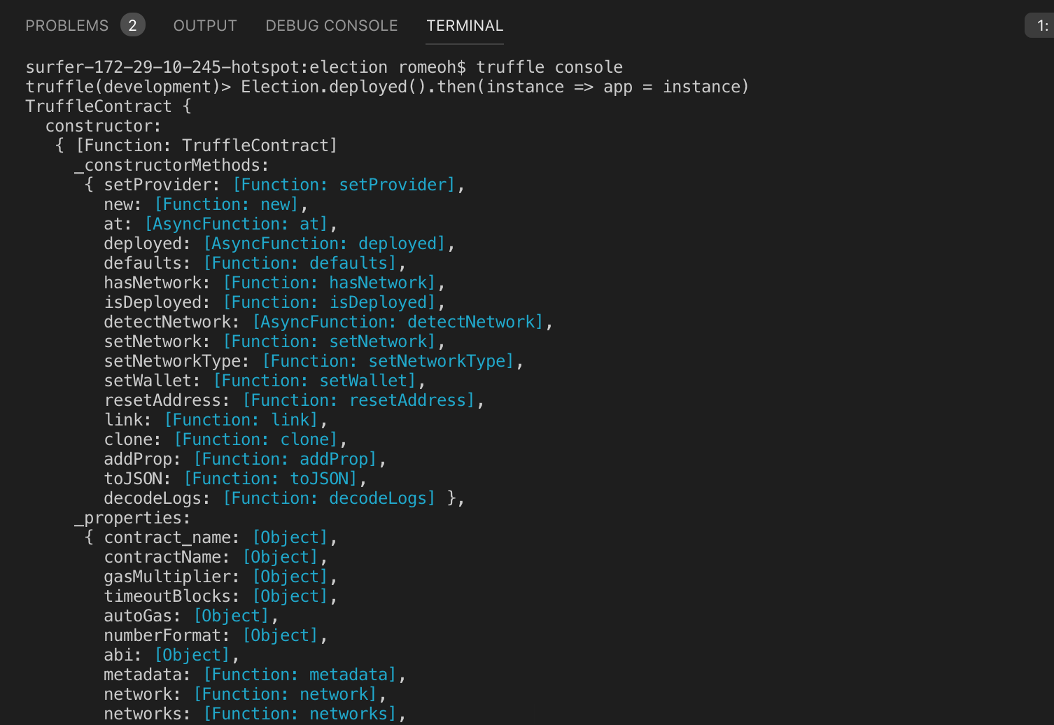 $ truffle console