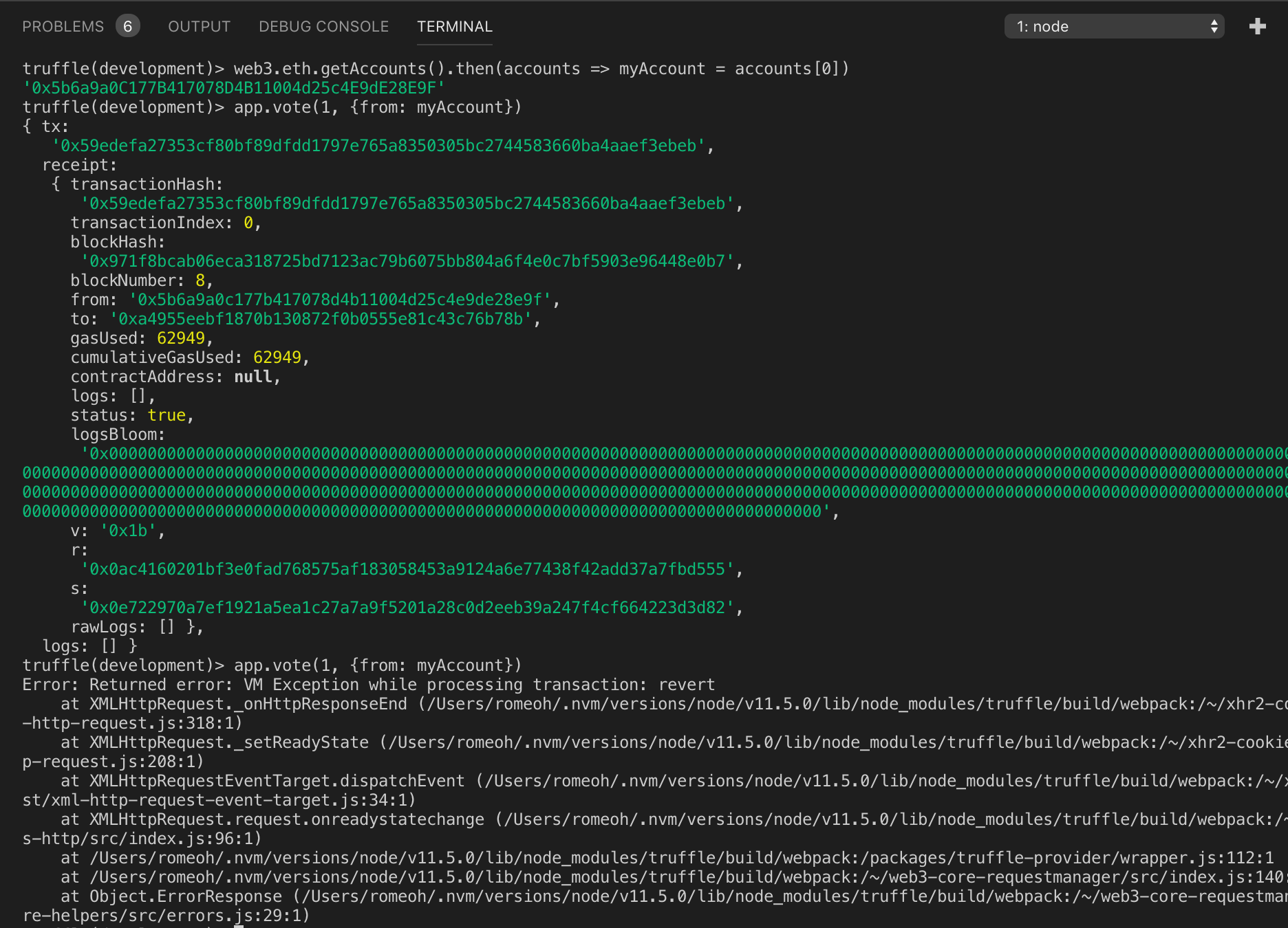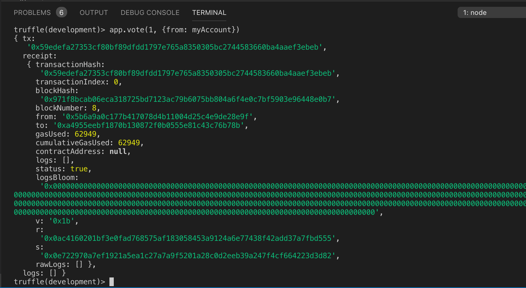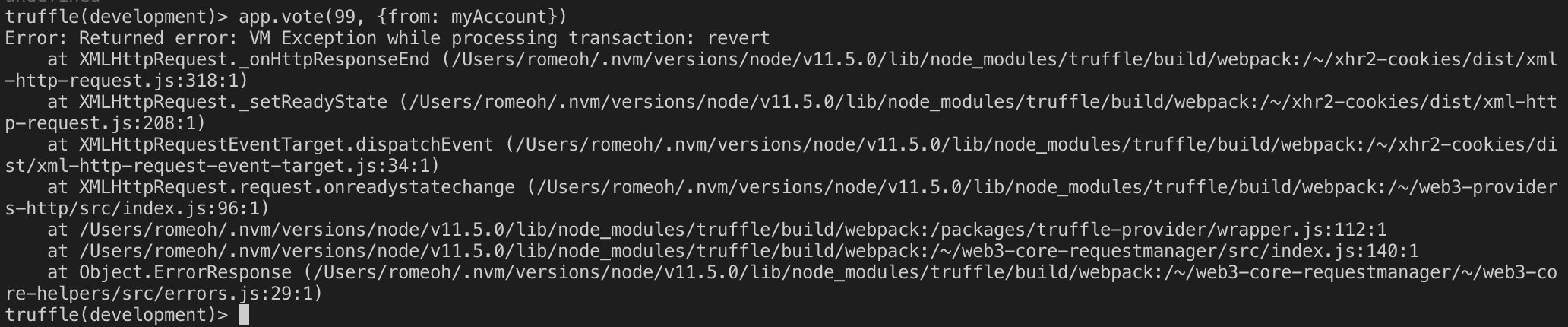 truffle(development)> app.vote(1, {from: myAccount})