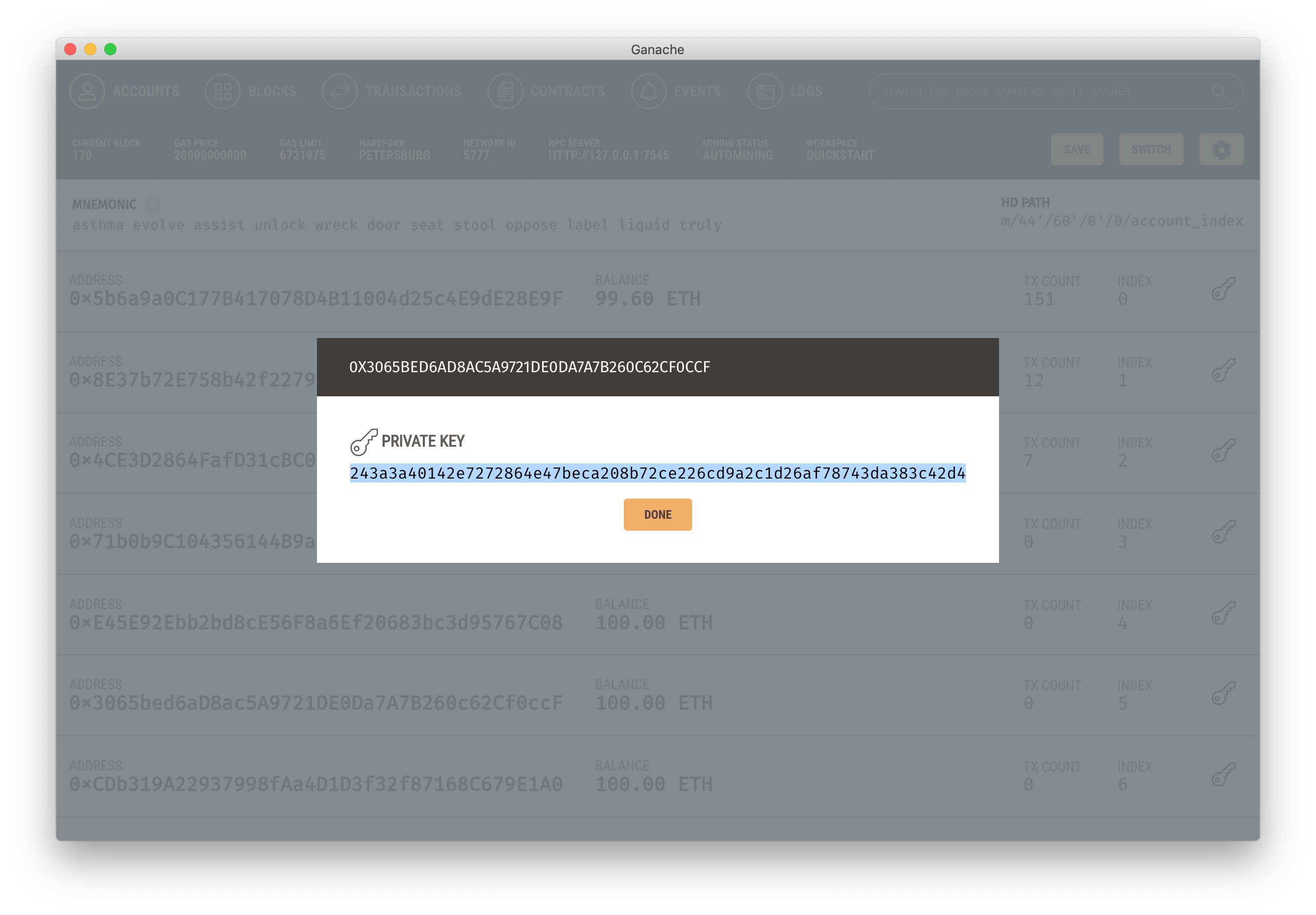 Private key를 복사합니다.