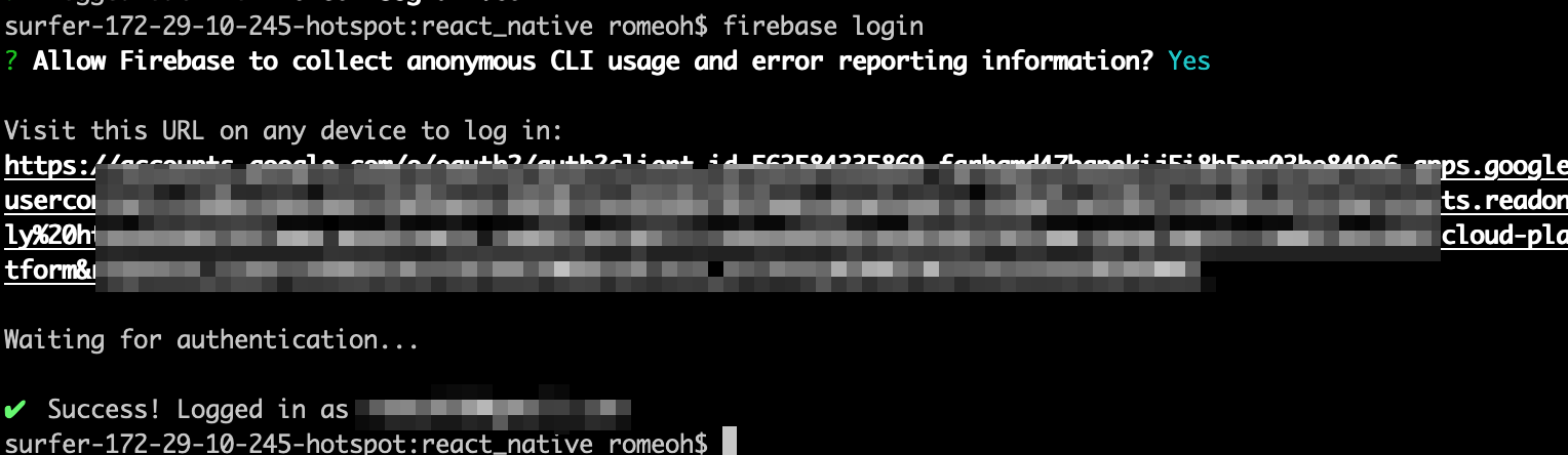 $ firebase login