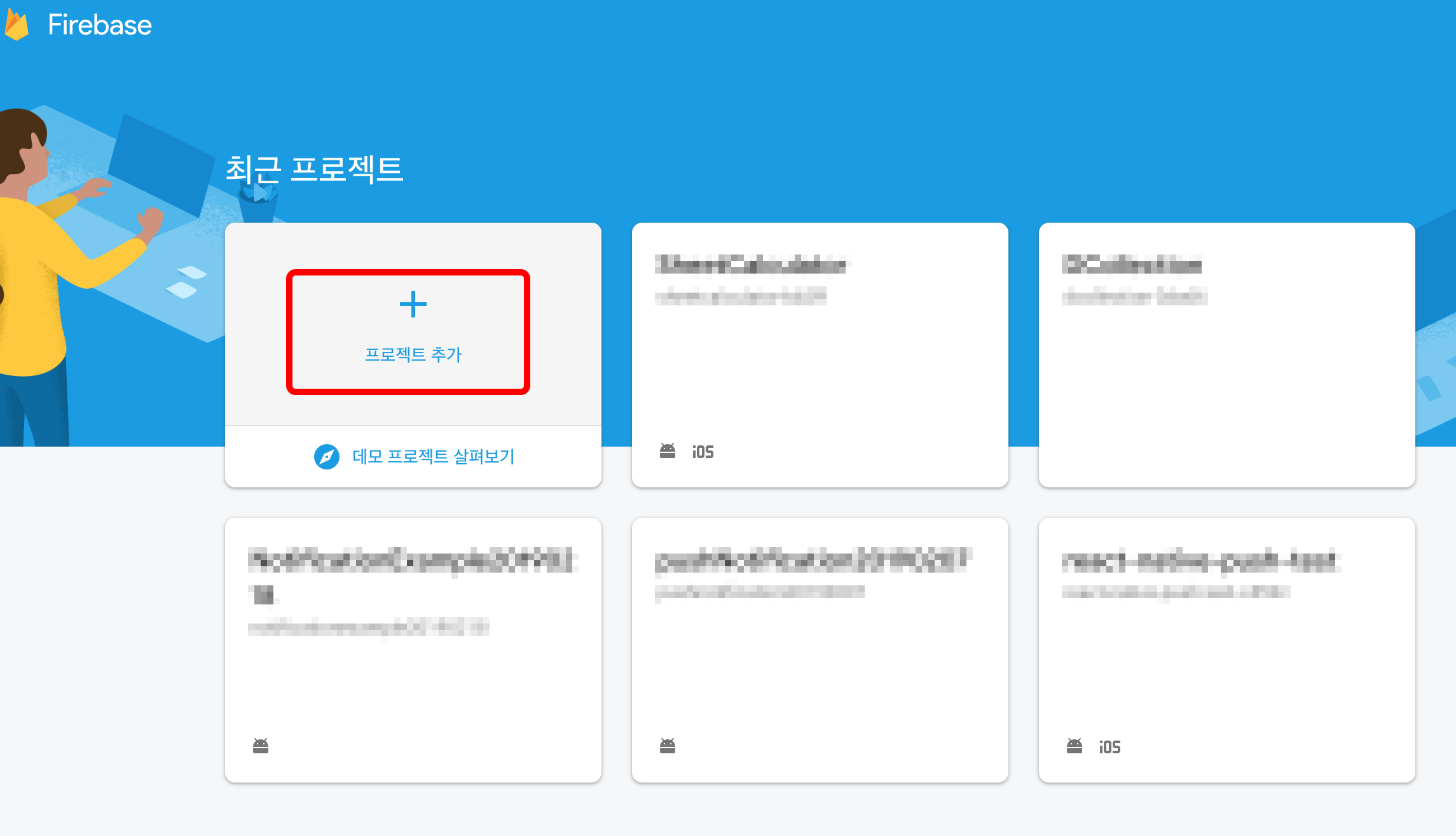 firebase에 가입하고 console로 이동합니다.