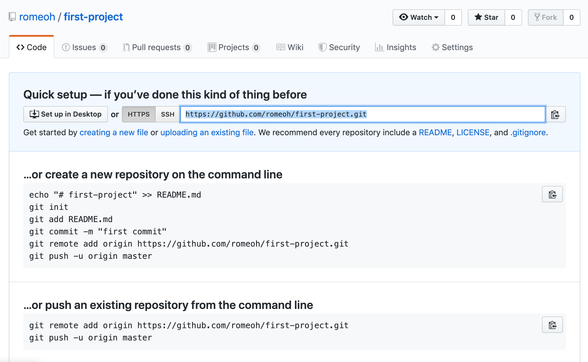 # git remote add origin "https://github.com/romeoh/first-project.git"