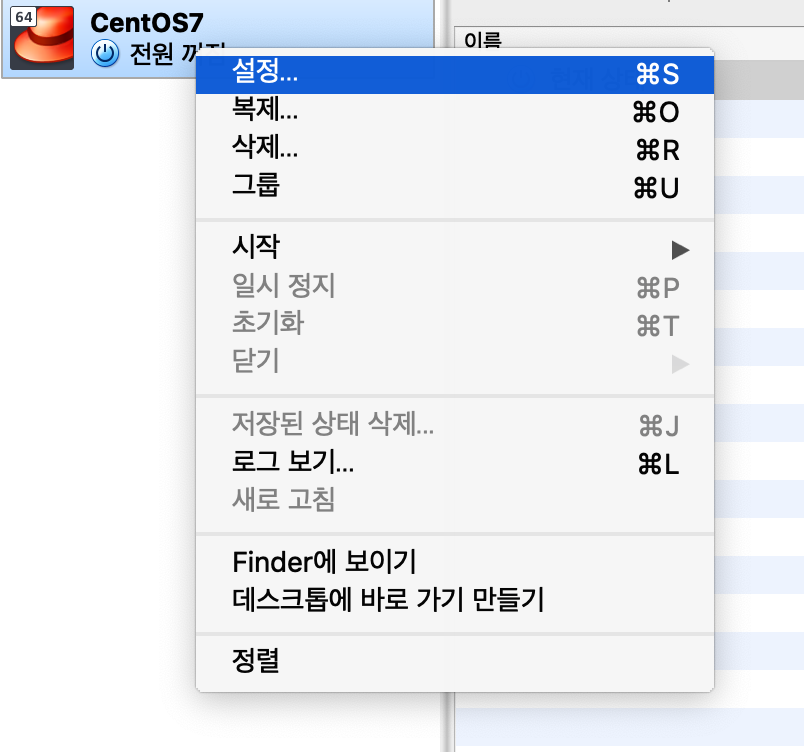VirtualBox를 종료하고 설정을 누릅니다.
