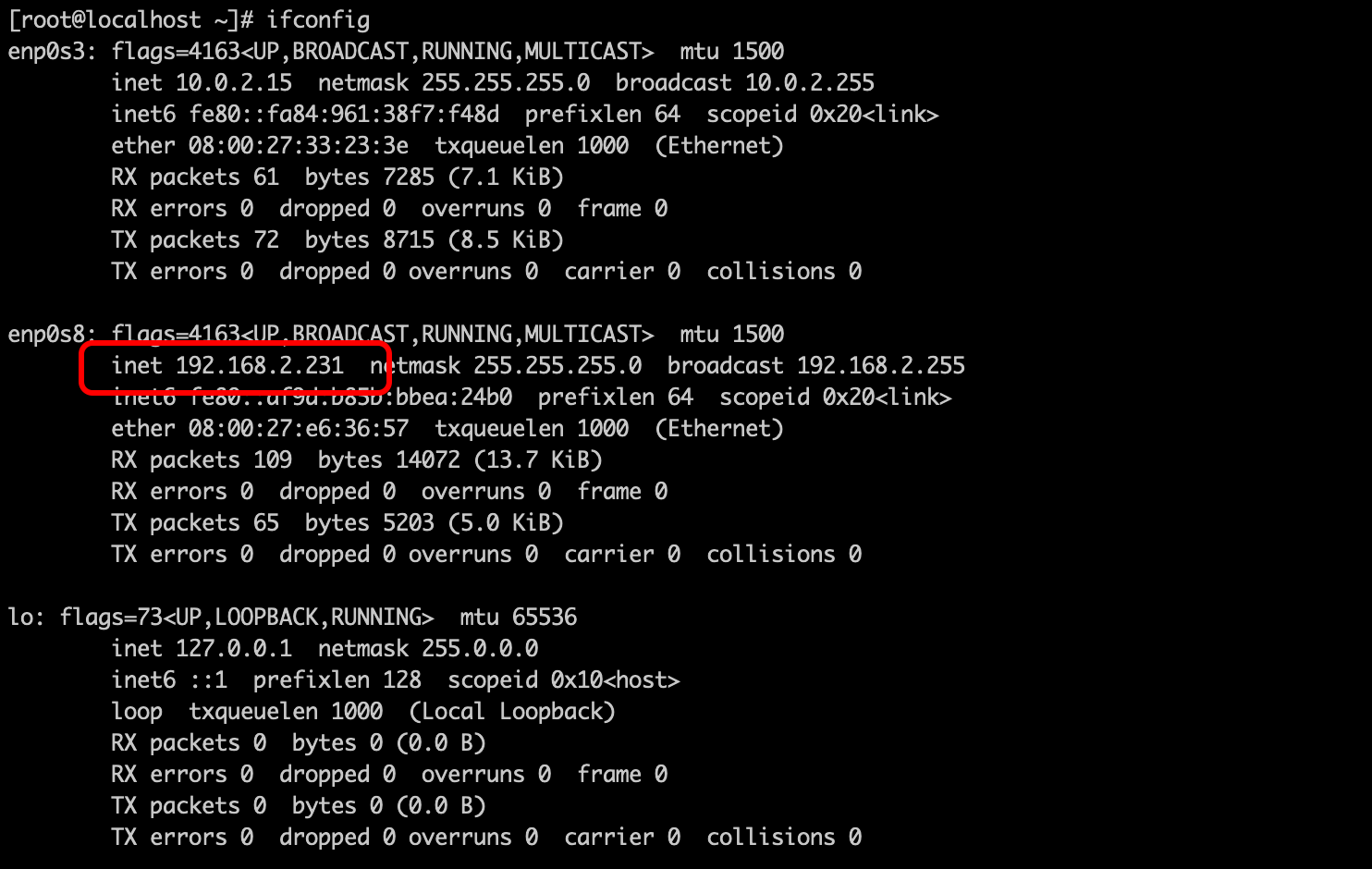 enp0s3과 lo의 네트워크만 표시됩니다.