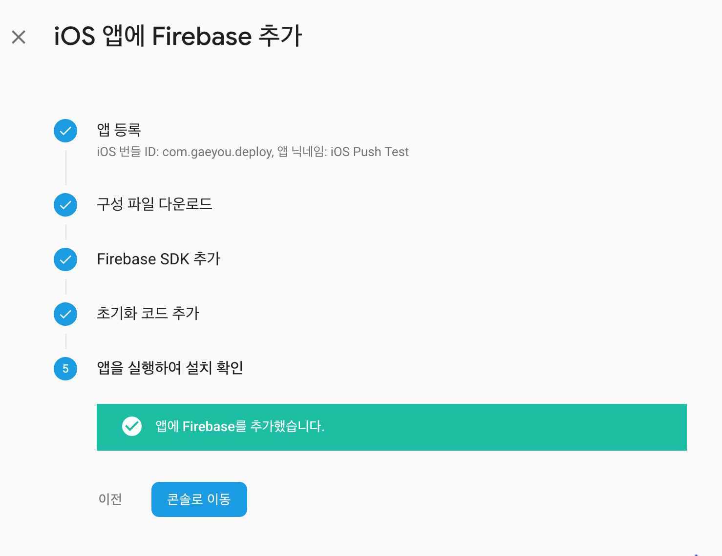 firebase 프로젝트와 app의 통신이 이루어졌습니다.