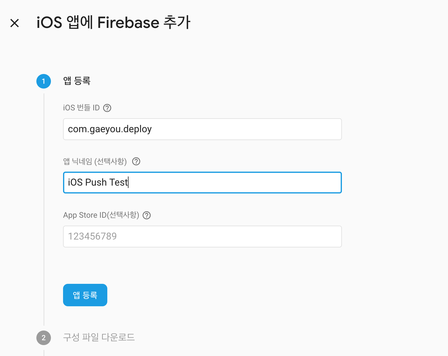 iOS 번들ID를 입력하고 앱 등록합니다.