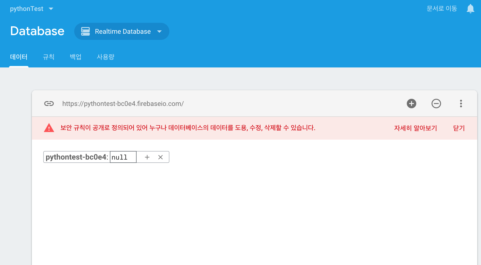 "databaseURL": "https://pythontest.firebaseio.com",
