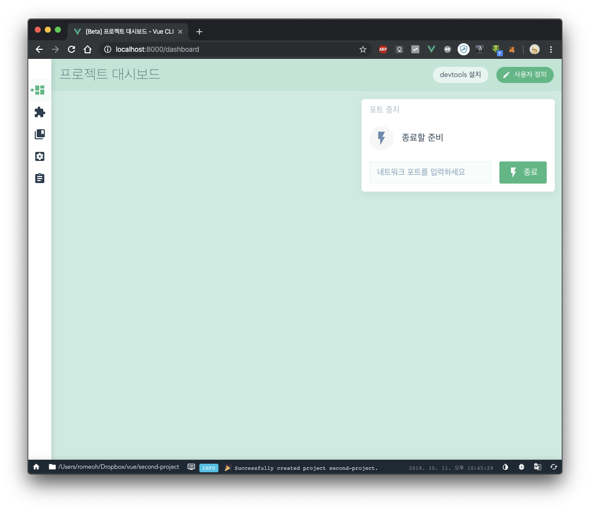 terminal에서 control + C (windows: Ctrl + c)를 눌러서 vue server를 종료합니다.